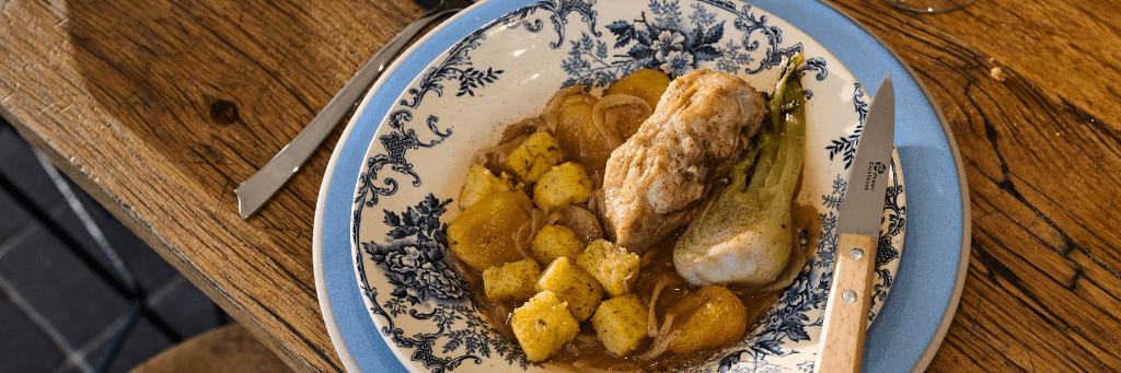 5. Versez le contenu de la cocotte dans un plat de service préchauffé, parsemez de persil, grattez les graines de vanille contenues dans la 1/2 gousse fendue, mélangez et servez aussitôt.